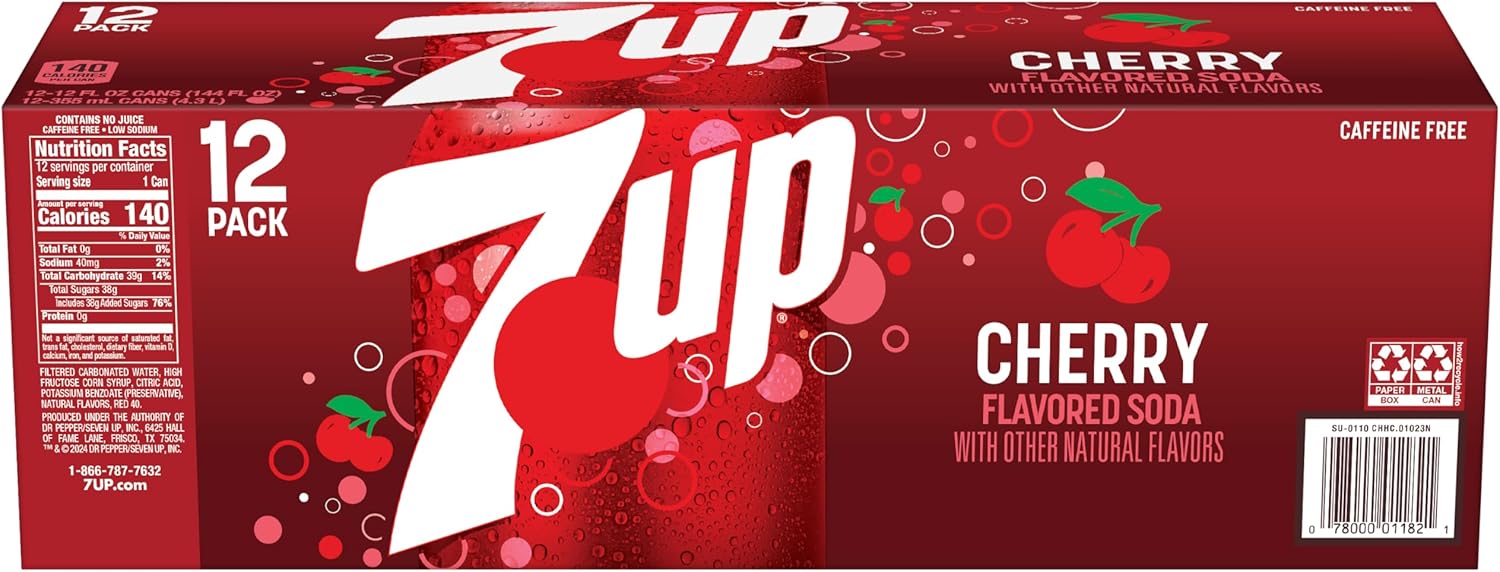 Just like the original, 7UP Cherry is caffeine-free, low in sodium, and made with great-tasting all-natural cherry flavor.