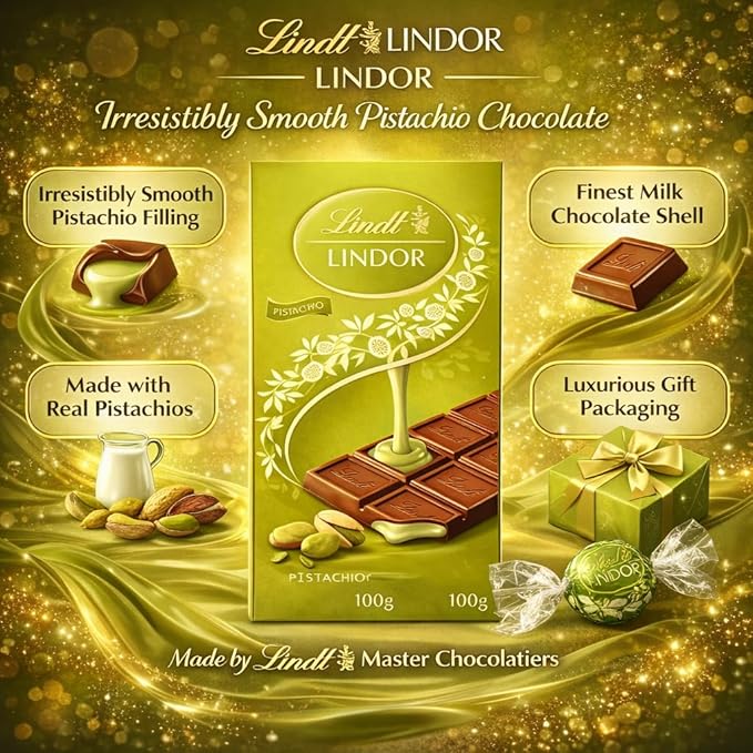 - 🍫 Irresistibly Smooth Texture – Crafted with a delicate chocolate shell that melts effortlessly, revealing a luscious pistachio filling that delivers signature Lindor smoothness in every bite.