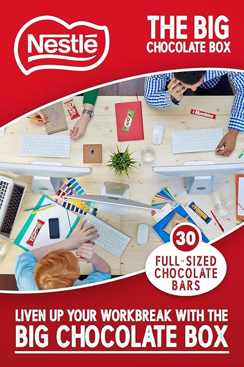 The Big Chocolate Box features 5 of Nestle’s most iconic snacks in one box, with 30 full-size bars making an ideal gift for any celebration, sharing or breaktime occasion. Features 6 x 4 Finger Milk Chocolate KitKat, 6 x Milk Chocolate Yorkie, 6 x Aero Peppermint Bubbly Bar, 6 x Munchies Tube, 6 x KitKat Chunky Milk